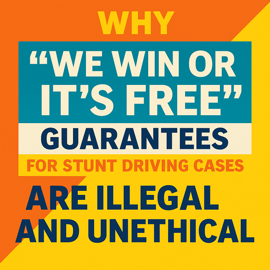Why “We Win or It’s Free” Guarantees for Stunt Driving Cases Are Illegal and Unethical