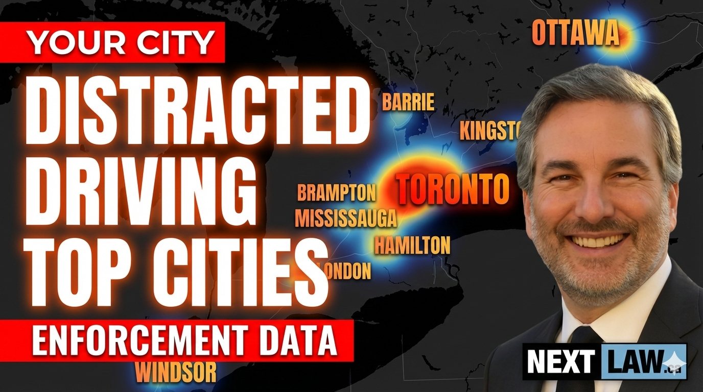This guide breaks down distracted driving charges by city across Ontario based on 10 years of data (2016-2025), insurance impacts for your area, and court locations where your case will be heard.